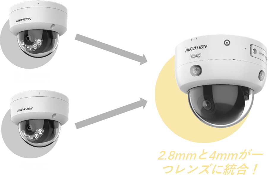 Hikvision独自のポイントバリフォーカルレンズを採用し、2.8mmと4mmの画角を1つのレンズでカバーします。