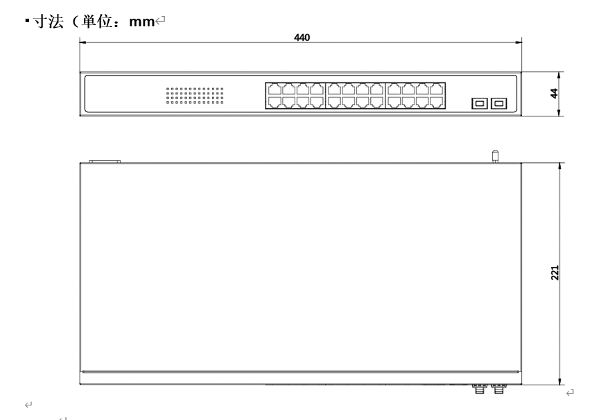 | 寸法 (W × H × D) | 440.00 mm × 44.00 mm × 221.00 mm (17.32” × 1.73” × 8.70”) |
