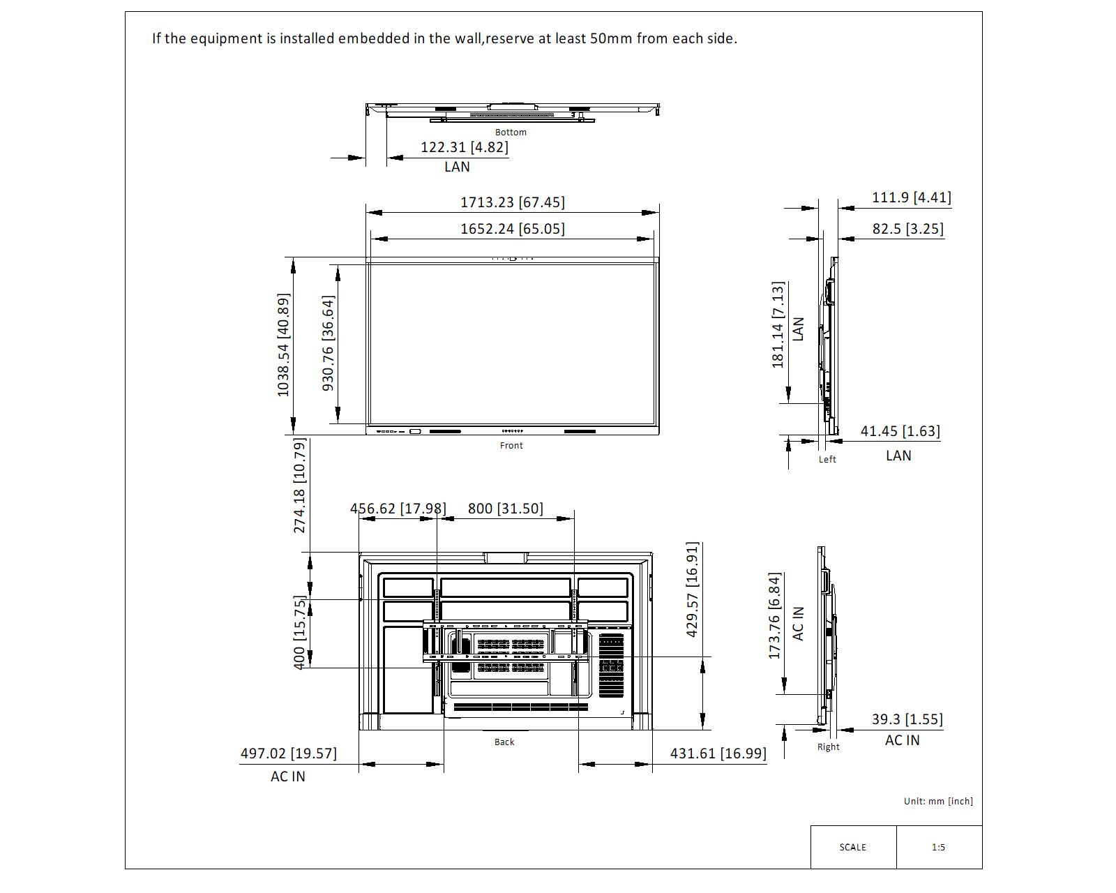 | 製品寸法(壁取付なし) | 1713.23 mm × 1038.54 mm × 82.5 mm |