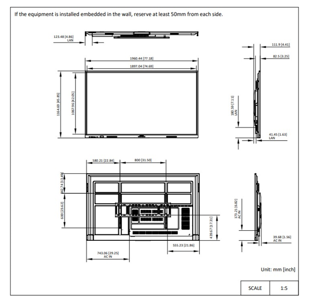 | VESA | 800 mm× 600 mm (4× M8-25 mm) |