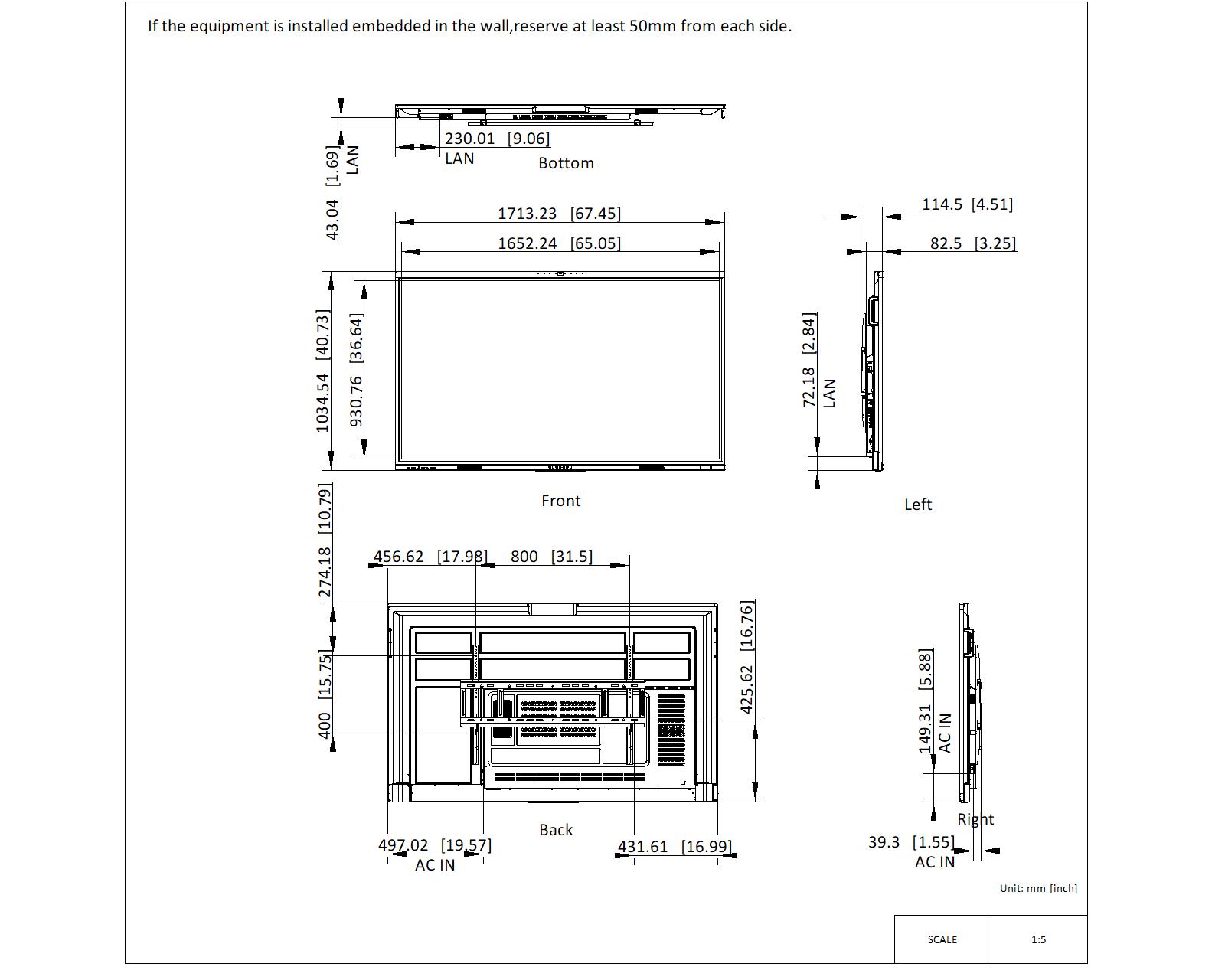 | 製品寸法(壁取付時) | 1713.2 × 1034.5 × 114.5 mm |
