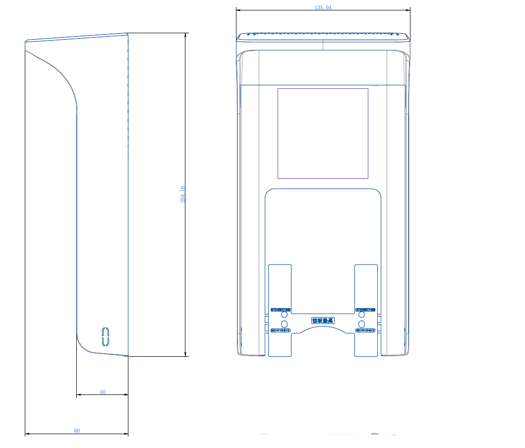 外形寸法 135 mm × 80 mm × 250 mm (5.3″ × 3.1″ × 9.8″)